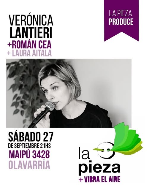 Para inaugurar un ciclo “en nuestro espacio Galpón Vibra, que se propone dar lugar a la música, el teatro y la danza de nuestros artistas locales, La Pieza Produce presenta a Verónica Lantieri -en voz- junto a Román Cea, en el piano y la participación de Laura Aitala”, dieron a conocer mediante una gacetilla de prensa.